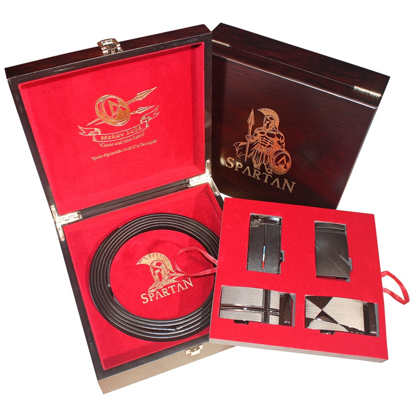 Prémiová luxusná dvojposchodová sada opaskov Spartan v drevenej kazete. BOX č. S2
